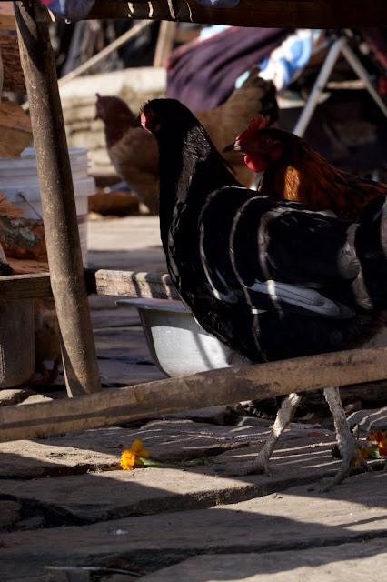 So I'm here. Contentedly writing in the sunshine while trying to convince the restless chicks that I haven't got chocolate, sweets, five rupees. With limited success. Chuckling at the sign posted on the wall to my left, which proudly declares, "Sunrise View" and "Friendly Behaviour."